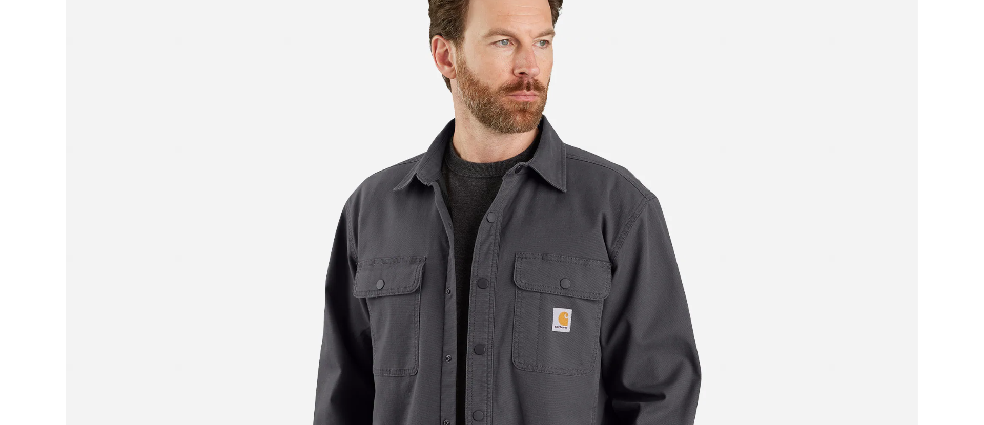 - Metallic Carhartt logo snaps throughout