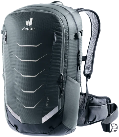 Pared down to the essentials, the new Flyt still has all the features you need for a big day on the trails: Clips to attach a half-shell helmet, side compression straps to attach a full-face helmet and two stowable gear straps for attaching protective gear to the outside of the pack. And of course, there’s the TÜV/GS-certified back protector that’s easy to remove and provides maximum safety for when things go wrong. The deuter Airstripes back system on the Flyt provides excellent ventilation across the back.