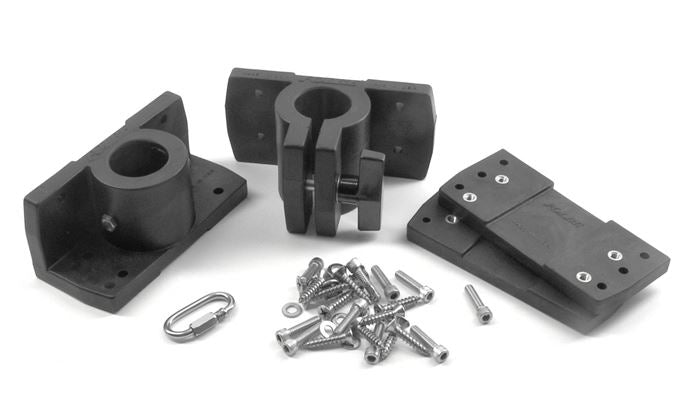 This kit is for the “do it yourself-er” who wants to build their own davit system. The kit comes with everything you need, except for the boom and pulley. Included are the upper and lower brackets, back plates for brackets (to make the main mounts removable), and all stainless hardware.