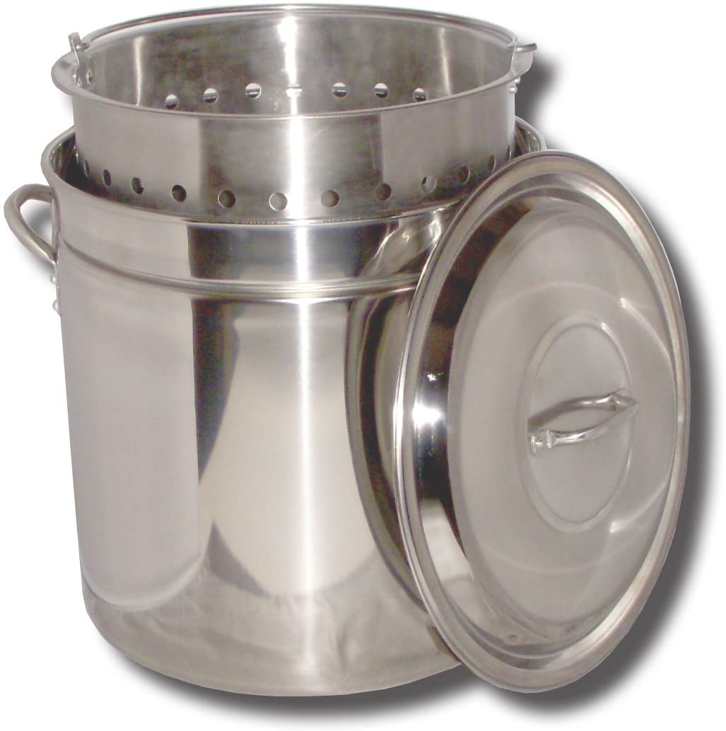 Show off your culinary prowess with the King Kooker 62-Qt Stainless Steel Boiling pot. This large pot features a steam rim, Lid & punched Stainless Steel Basket, so you can prepare all of your favorite foods with ease!.