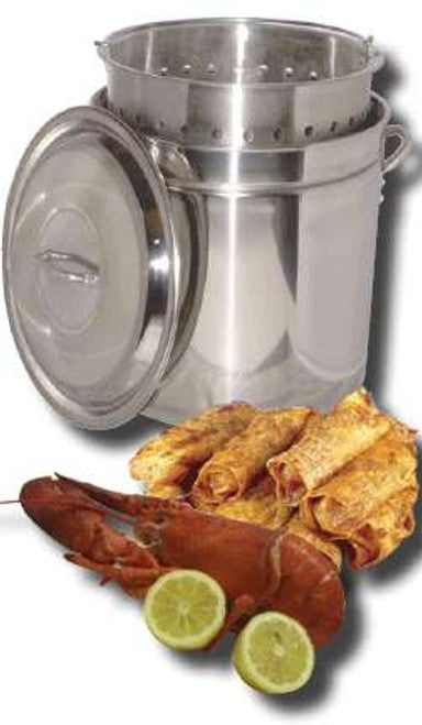 King Kooker Stainless Steel Boiling/Steaming Pot is 24 Qt. Ridged Stainless Steel Pot that includes basket and lid. Allows you to steam or boil your favorite seafood or other products the way you want it.