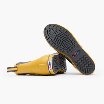 The Ankle Deck Boot collection has been crafted specifically for off-shore anglers. Anglers are athletes, and like any athlete they demand the best footwear to help them perform at a high level. We've created a lightweight design with the same slip-resistant Chevron outsole found on our Legacy boots. The 6" ankle deck boot is a great option for any on-the-water athlete looking for protection with slip-on-and-go styling. This boot is constructed with hand-layed rubber, and so not classified as a commercial grade boot. For those looking for a commercial grade ankle height deck boot please search for the Wheelhouse Boot.